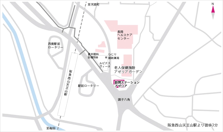 *タクシーをご利用の場合、JR長岡京駅・阪急長岡天神駅より約5分
